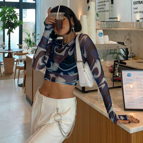 Custom Print Long Sleeve Crop Mesh Top Women’s T-Shirt