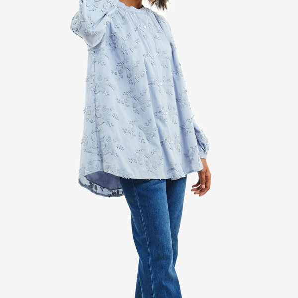 Embroidery Crew Neck Muslim Blouse-Blue