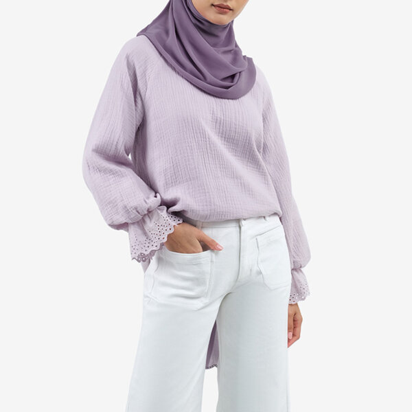 Flared Cotton Muslim Blouse – Light Purple