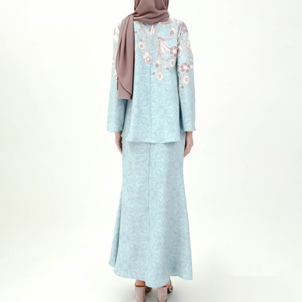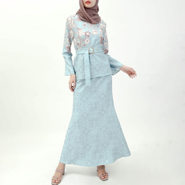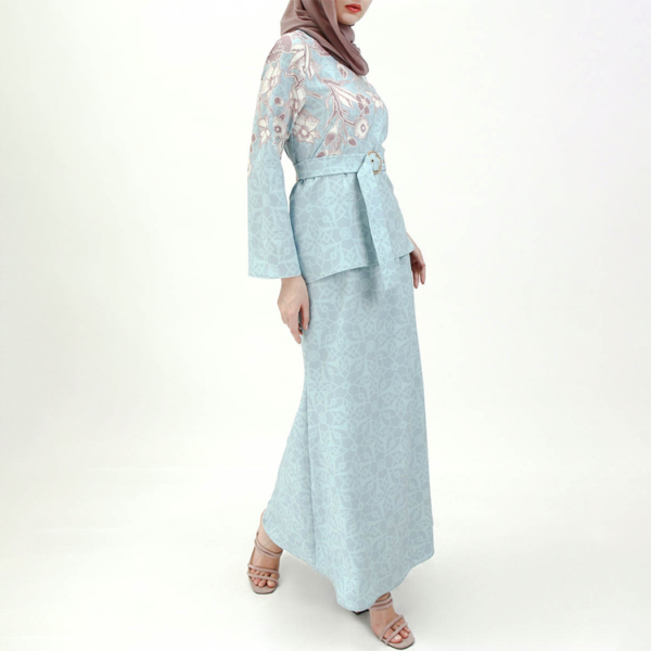 Floral Top And Skirt Baju Kurung – Light Blue