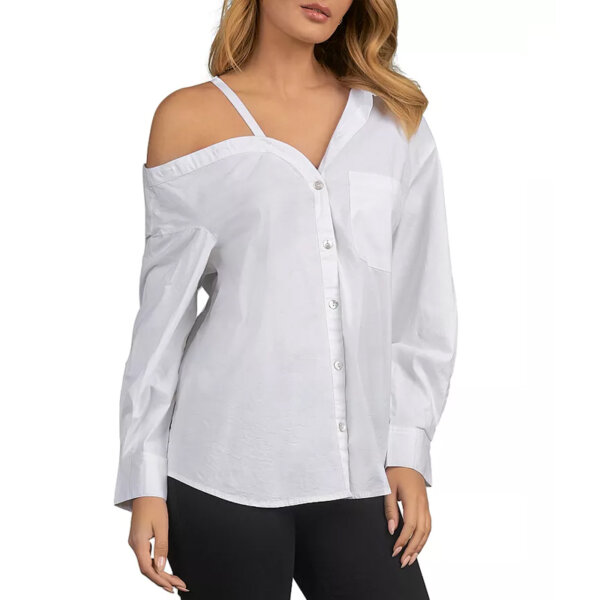 White Off Shoulder Long Sleeve Cotton Shirt